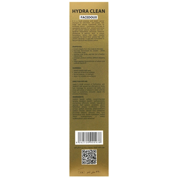 شامپو ضد شوره موی چرب هیدراکلین فیس دوکس ضمن پاکسازی کامل مو، می تواند به تنظیم تولید سبوم کف سر کمک کند و ترکیبات آن در برطرف کردن مشکل کف سر مستعد شوره اثر بسزایی دارد. همچنین، با استفاده از این شامپو کارآمد موهای شما، شاداب و سالم به نظر می رسد.