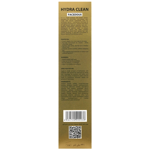 شامپو ضد شوره موی چرب هیدراکلین فیس دوکس ضمن پاکسازی کامل مو، می تواند به تنظیم تولید سبوم کف سر کمک کند و ترکیبات آن در برطرف کردن مشکل کف سر مستعد شوره اثر بسزایی دارد. همچنین، با استفاده از این شامپو کارآمد موهای شما، شاداب و سالم به نظر می رسد.