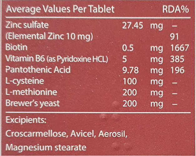زینک سولفات.بیوتین.مخمرآبجو.ب6وب5.ال-سیستئین.ال-متیونین