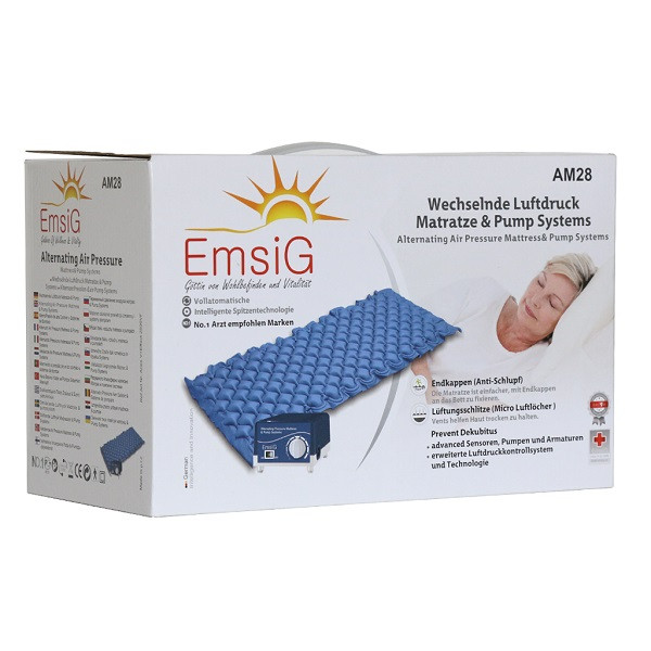 تشک مواج تخم مرغی امسیگ مدل AM 28 برای جلوگیری از زخم بستر برای بیمارانی که نیاز به مراقبت ۲۴ ساعته دارند طراحی شده است. این دستگاه از یک تشکچه و یک پمپ تشکیل شده است. تشک مواج امسیگ از جنس پی وی سی بوده و از ۱۳۰ سلول حبابی تشکیل شده است. این تشک همچنین دارای منافذ ریز تهویه هوا می باشد که از تعریق جلوگیری کرده و بدن بیمار را خشک نگاه می دارد.