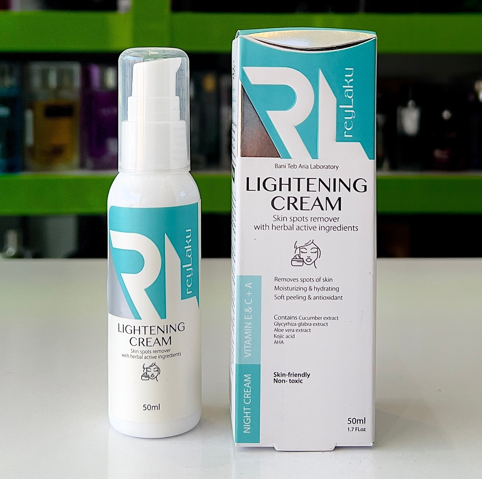 ترکیبات عصاره آلوئهورا / عصاره شیرینبیان / عصاره خیار / کوجیک اسید / ویتامین E / ویتامین A / ویتامین C