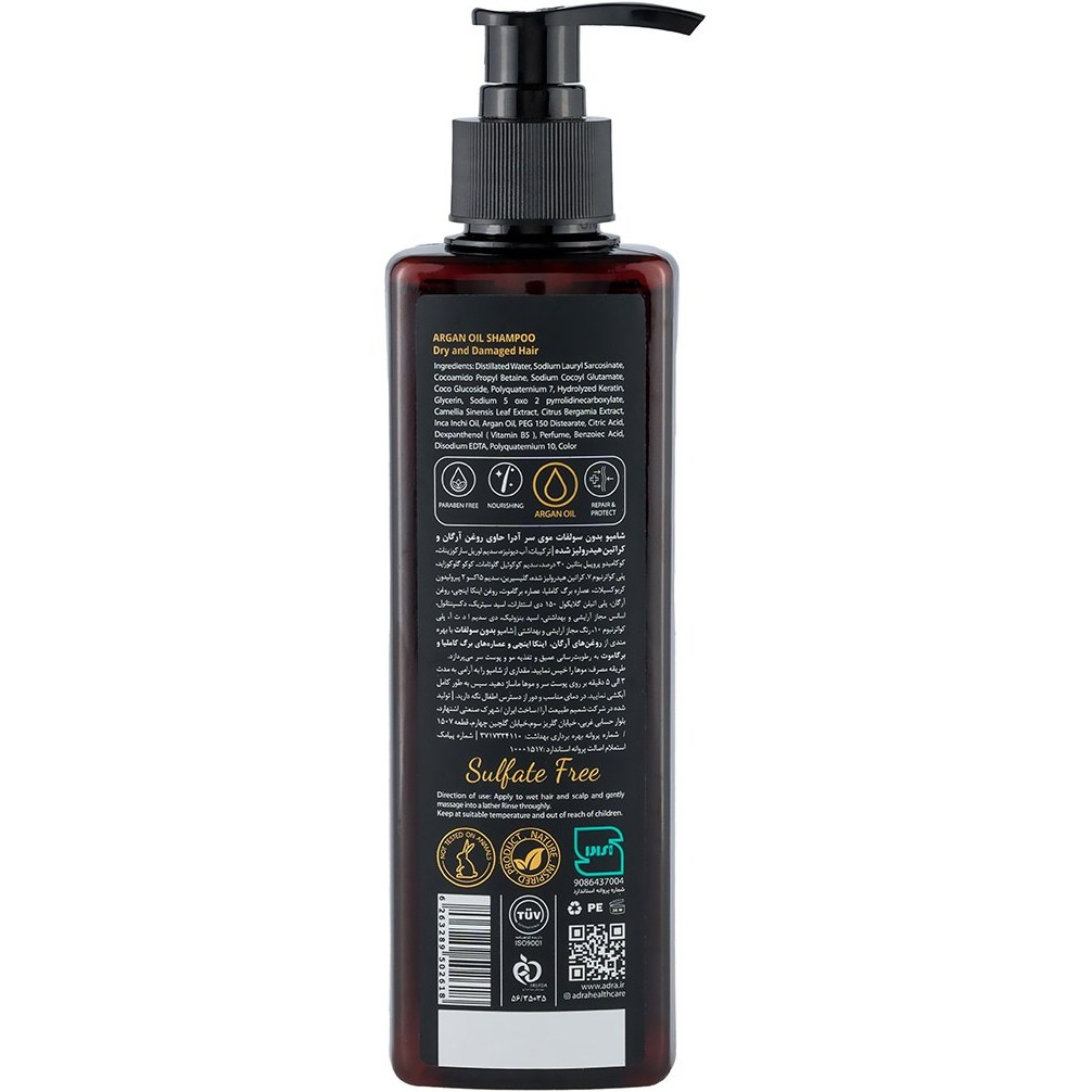 شامپو آدرا حجم ۲۷۰ میلی لیتر ترمیم کننده بدون سولفات حاوی روغن آرگان