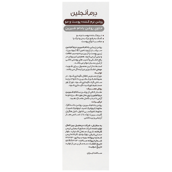روغن بادام شیرین درم انجلین، موثر در بهبود ترک بدن و ترک پا