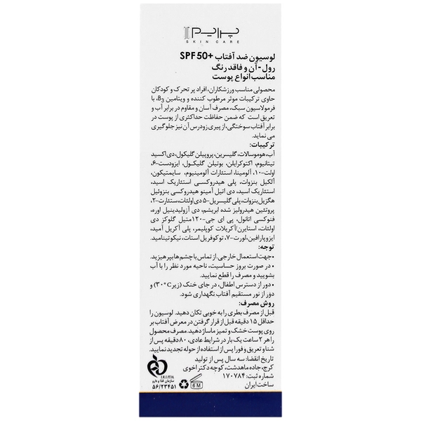 ضد آفتاب رولی پرایم صرفا جهت استعمال خارجی است. از تماس فرآورده با چشمها بپرهیزید.