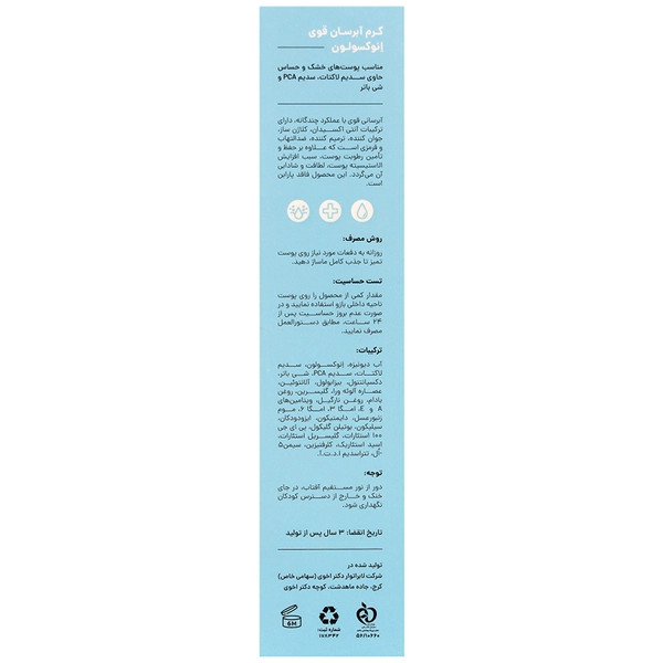 کرم آبرسان قوی انوکسولون سی گل، بدون داشتن پارابن، علاوه بر حفظ رطوبت، خاصیت الاستیسیته پوست را افزایش داده و زیبایی و سلامت آن را تضمین میکند. گفتنی است که این محصول زیر نظر متخصصان شرکت لابراتوار دکتر اخوی در قالب تیوپ های 50 میلی لیتری فرآوری شده است.