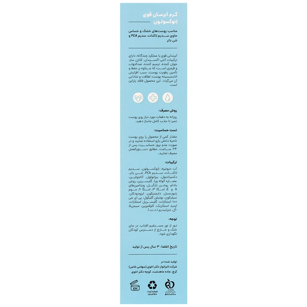 کرم آبرسان قوی انوکسولون سی گل، بدون داشتن پارابن، علاوه بر حفظ رطوبت، خاصیت الاستیسیته پوست را افزایش داده و زیبایی و سلامت آن را تضمین میکند. گفتنی است که این محصول زیر نظر متخصصان شرکت لابراتوار دکتر اخوی در قالب تیوپ های 50 میلی لیتری فرآوری شده است.