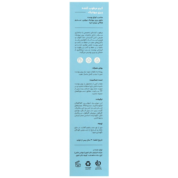 قبل از مصرف کرم، بروشور داخل جعبه را مطالعه کنید و تست محصول را از نظر ایجاد حساسیت، روی پوست انجام دهید.