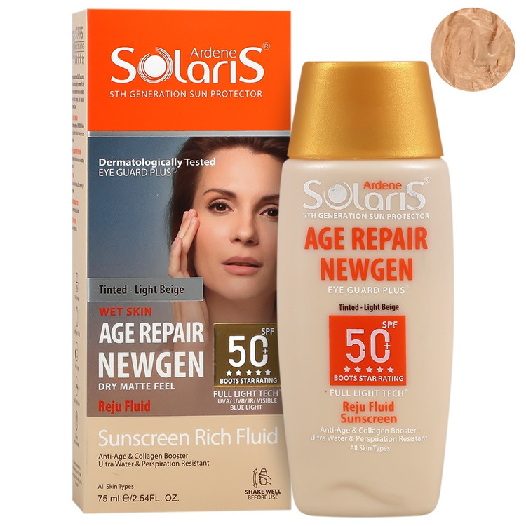 فلوئید ضد آفتاب ایج ریپیر نیوژن SPF50 سولاریس برای محافظت از انواع پوست قابل استفاده است.