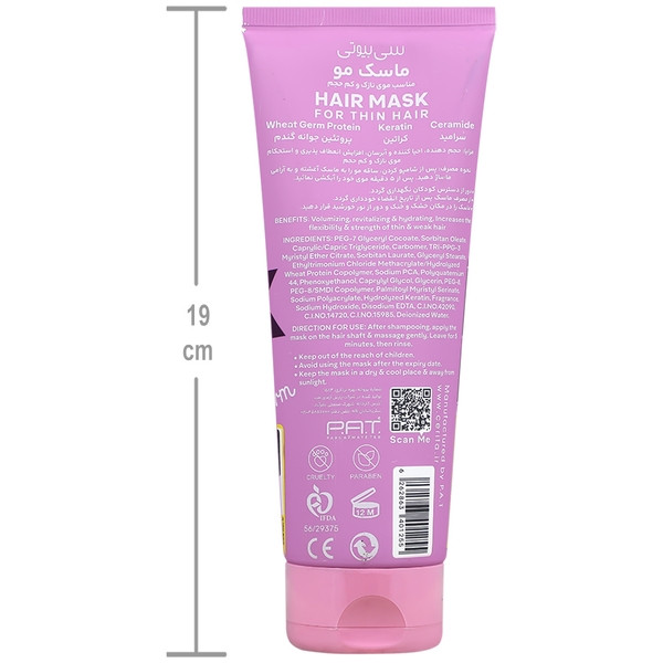 فرمولاسیون این محصول، که مورد تأیید یکی از لابراتوارهای مجهز کشور سوئیس می باشد، حاوی ترکیباتی است که به طور موثری در تقویت و حجمدهی به موها نقش دارند. پروتئین جوانه گندم، یکی از مهمترین ترکیبات ماسک موهای نازک و کم حجم سریتا بیوتی، با تأمین مواد مغذی ضروری، باعث تقویت ساختار تارهای مو میگردد.