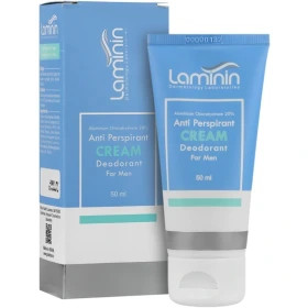 در فرمولاسیون کرم ضد تعریق دئودورانت آقایان 50 میلی لیتری لامینین از آلومینیوم کلروهیدرات استفاده شده که این ماده علاوه بر جلوگیری از تعریق، با داشتن خواص ضد میکروبی و ضد باکتریایی مانع از رشد باکتری عامل بوی ناخوشایند عرق (باکتری استافیلوکوکوس اپیدرمیس) می گردد. لانولین موجود در این کرم ضد تعریق همچنین موجب حفظ رطوبت پوست شده و در عین حال سطح پوست را نرم، لطیف و شفاف می سازد و به شفافیت آن نیز کمک می کند. از دیگر ترکیبات موثر در نرمی پوست موجود در ضد تعریق لامینین مردانه می توان به گلیسیرین اشاره نمود که این ماده برای مدتی روی پوست باقی مانده و مانع از دست رفتن رطوبت پوست می شود.